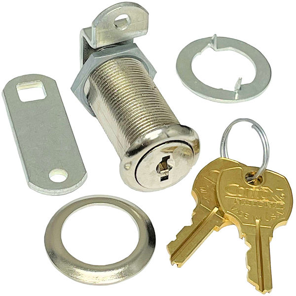 CompX National disc tumbler cam lock with 2" cylinder length, 90 degree CW rotation, 3/4" mounting hole. Available in Bright Nickel