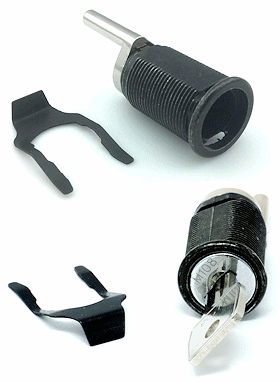 Cylinder body, clip, lock core & key for Trendway / Haskell pedestals and American Seating office furniture. Length of lock is 2" with a standard 3/4" by 5/8" mounting hole. 180 degree lock rotation. Comes with lock core installed and key. Choose either American Seating A4 or Trendway M lock cores. Keyed Alike.